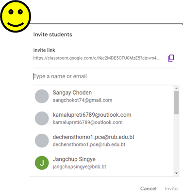Link to my Google Classroom: https://classroom.google.com(Sangay Choden)